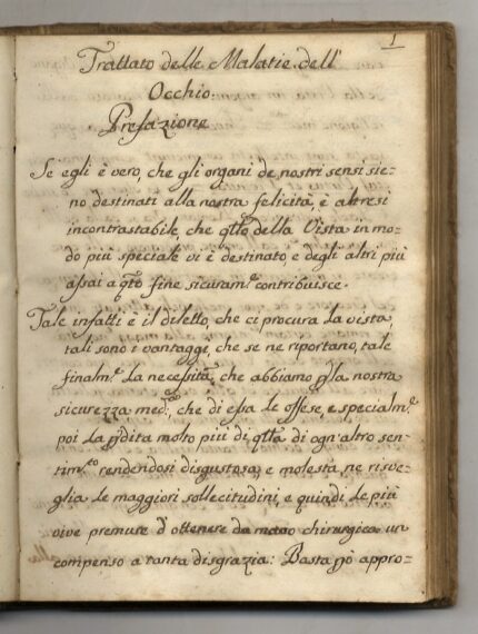 OCULISTICA, medicina, manoscritto, Settecento