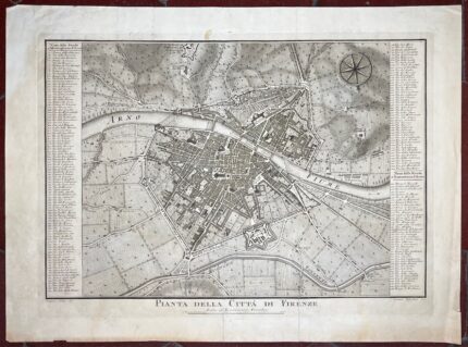 [Firenze], [s.n.t.], [c. 1783], monumentale, preziosa pianta incisa in rame all’acquaforte su sei fogli, ciascuno di mm 485×785 circa (queste misure comprendono anche i margini bianchi, che in caso la carta fosse ...